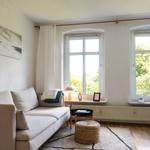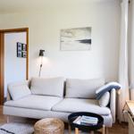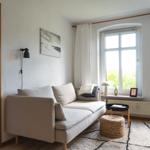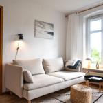 Die Ferienwohnung bietet eine einladende Atmosphäre mit einem offenen Wohnbereich, der mit einem komfortablen Sofa, einem Sessel und einem TV-Gerät ausgestattet ist. Die helle Einrichtung sorgt für Wohlfühlmomente. Das Schlafzimmer verfügt über ein großzügiges Doppelbett (180x200cm), das erholsame Nächte verspricht – ideal, um Energie für Ausflüge in die Probstei und an die Ostsee zu tanken.