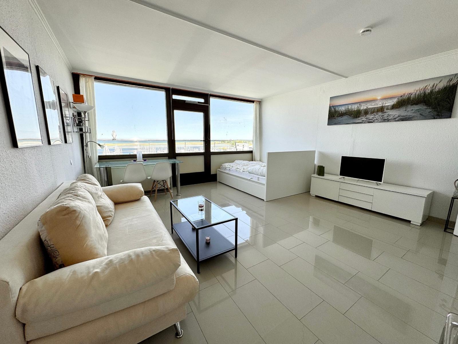 Im offenen Wohn- und Essbereich erwartet Sie eine gemütliche Sofaecke, an die sich der Esstisch anschließt. Die Fensterfront viel Tageslicht hinein und bietet einen herrlichen Ausblick auf die Ostsee und den Yachthafen. Vom angrenzenden Balkon aus können Sie die frische Meeresluft und das maritime Flair genießen – perfekt für einen entspannten Start in den Tag oder einen stimmungsvollen Ausklang am Abend.