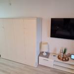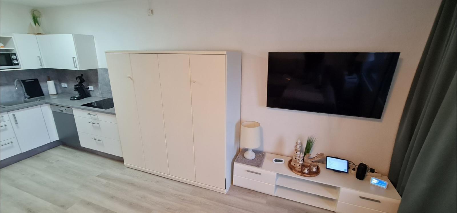 Die Ferienwohnung Optimist Prime 5329 liegt zentral in der Marina Wendtorf und bietet eine modern renovierte Ein-Raum-Unterkunft für bis zu vier Personen. Im Wohnbereich befinden sich ein großes Schlafsofa und ein Murphy-Schrankbett sowie ein Essbereich. Die offene Küchenzeile ist mit einem Induktionsherd, Backofen, Kühlschrank mit Gefrierfach, Mikrowelle und Spülmaschine ausgestattet. Für die Bequemlichkeit der Gäste stehen zudem eine Senseo-Espressomaschine, Toaster und Wasserkocher bereit. Der Wohnbereich überzeugt durch eine Sofaecke und moderne Medienausstattung, einschließlich einem großen Smart-TV und schnellem WLAN. Das Badezimmer bietet eine großzügige Dusche, WC und Haartrockner. Weiterhin stehen eine Garderobe, ein Schuhschrank sowie Bügel- und Reinigungsgeräte zur Verfügung. Die Wohnung ist haustierfreundlich und barrierearm zugänglich. Der Komfort eines kontaktlosen Check-ins und der Einkaufsservice runden das Angebot ab.
